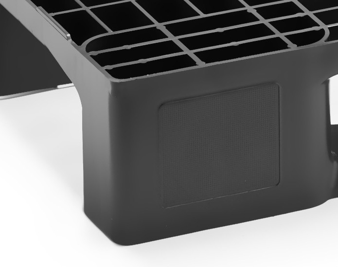 Palet monobloque con 3 patines compatible con todos los equipos estándar de manipulación.